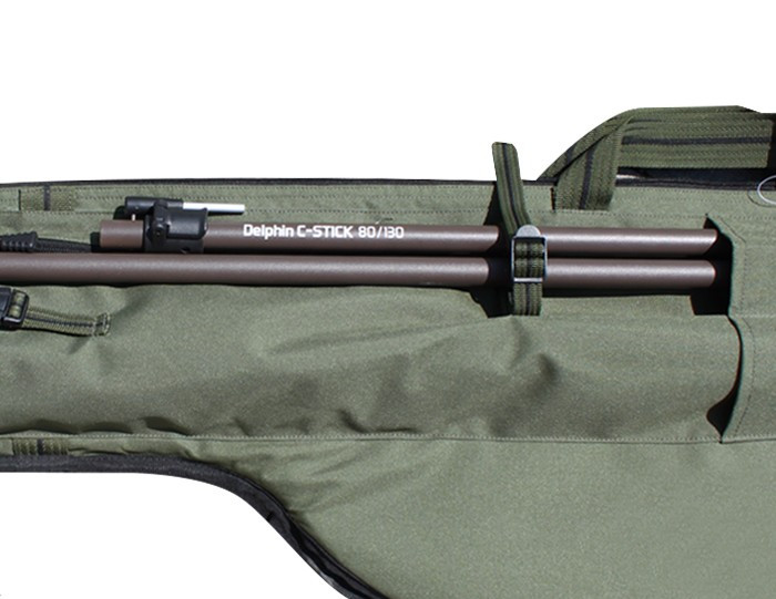 A modell oldalsó extra hosszú cipzáras zsebe, szolgálhat például meritőhálók tárolására. Találhatóak rajta zsebek szorító szijakkal, amelyekben leszúró bottartók tárolhatóak. Ebben a botzsákban könnyen tárolhatja a nehezen tárolható horgászfelszerelést.