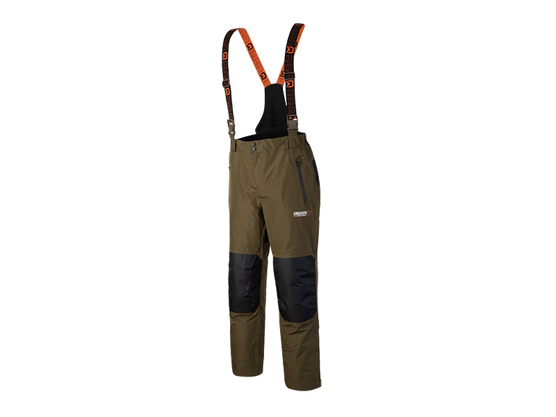A nadrág egyik fő előnye a magasított derékrész a csípő területén, amely kiváló védelmet nyújt a hát alsó részének. A fenék és a térd területe fekete szövettel van megerősítve, hogy megvédje ezeket a kopásnak leginkább kitett részeket. Ráadásul ezek, kiegészítve Delphin logókkal a nadrágtartón, stílusosan hozzájárulnak a ruha általános dizájnhoz is.