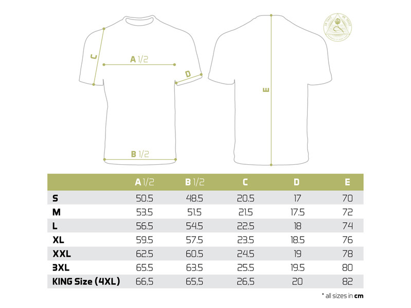 Maga a póló kiváló minőségű, akárcsak az alkalmazott színes nyomat. Széles méretválasztékban kínáljuk az S-től a KING MÉRETŰIG (megfelel a 4 + XL-nek, amit a legtöbb országban XXXXXL-nek neveznek). A King méretű modell játékosan felöltözteti még a legtermetesebb, 135 kg + súlyú horgászokat is.